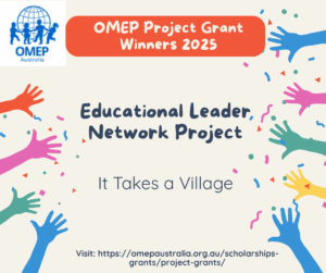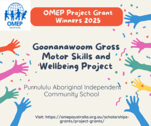 The funded projects span diverse contexts across Australia, supporting physical health and wellbeing in a remote Indigenous community, strengthening leadership capacity across the early childhood sector, and amplifying the voices of educators working in rural, regional, and remote settings. Together, these initiatives reflect OMEP’s commitment to equity, professional practice, and improved outcomes for young children and educators.